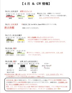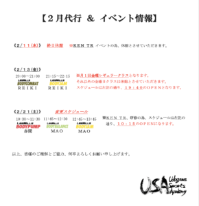 【更新】代行・休講・レッスンスケジュール公開しました。